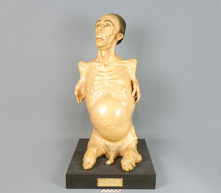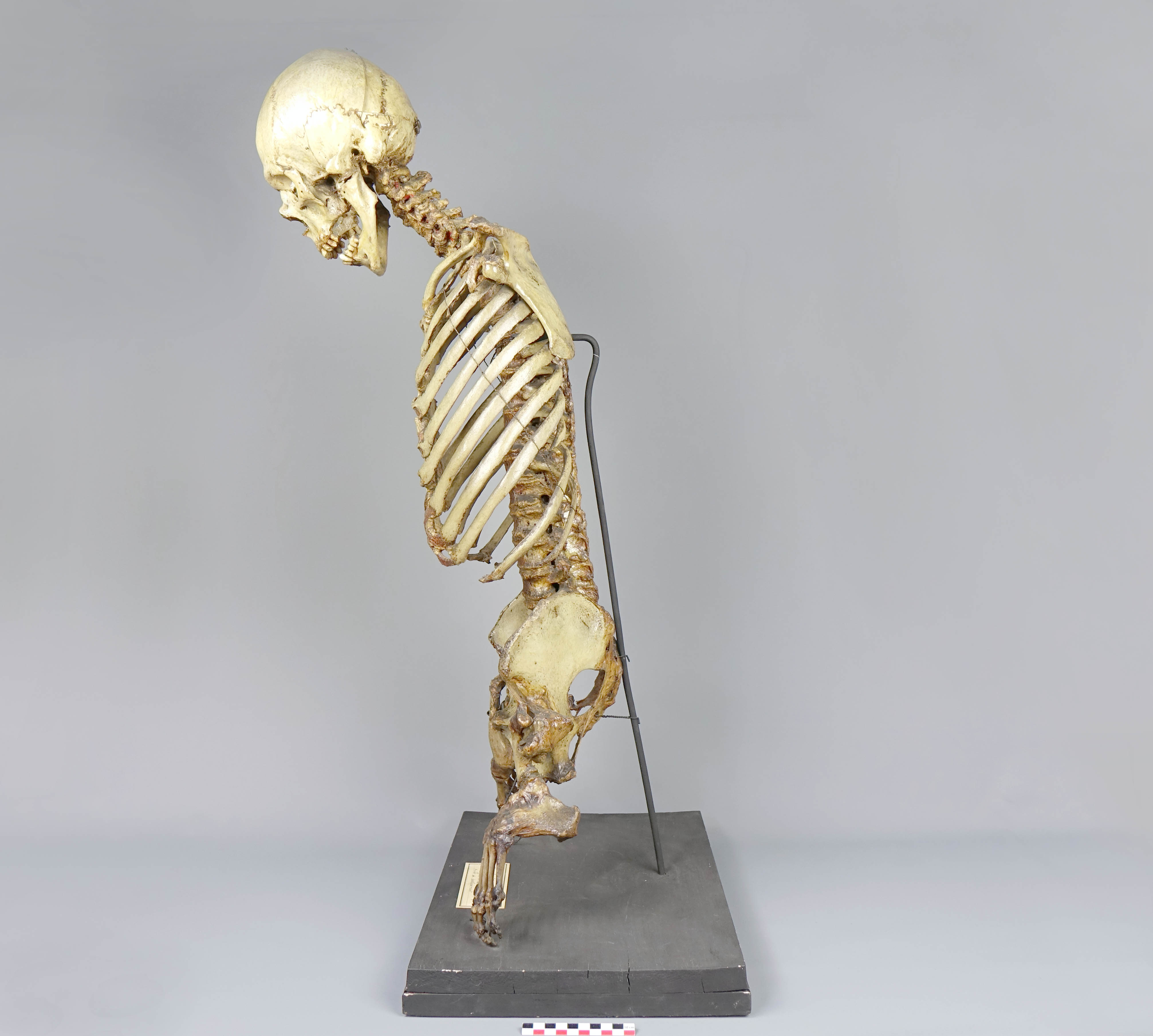 - Étiquette : "654 Nouv. Squelette d'un homme mort à l'âge de 62 ans, les membres thoraciques et abdominaux imparfaits. Arrêt de développement"