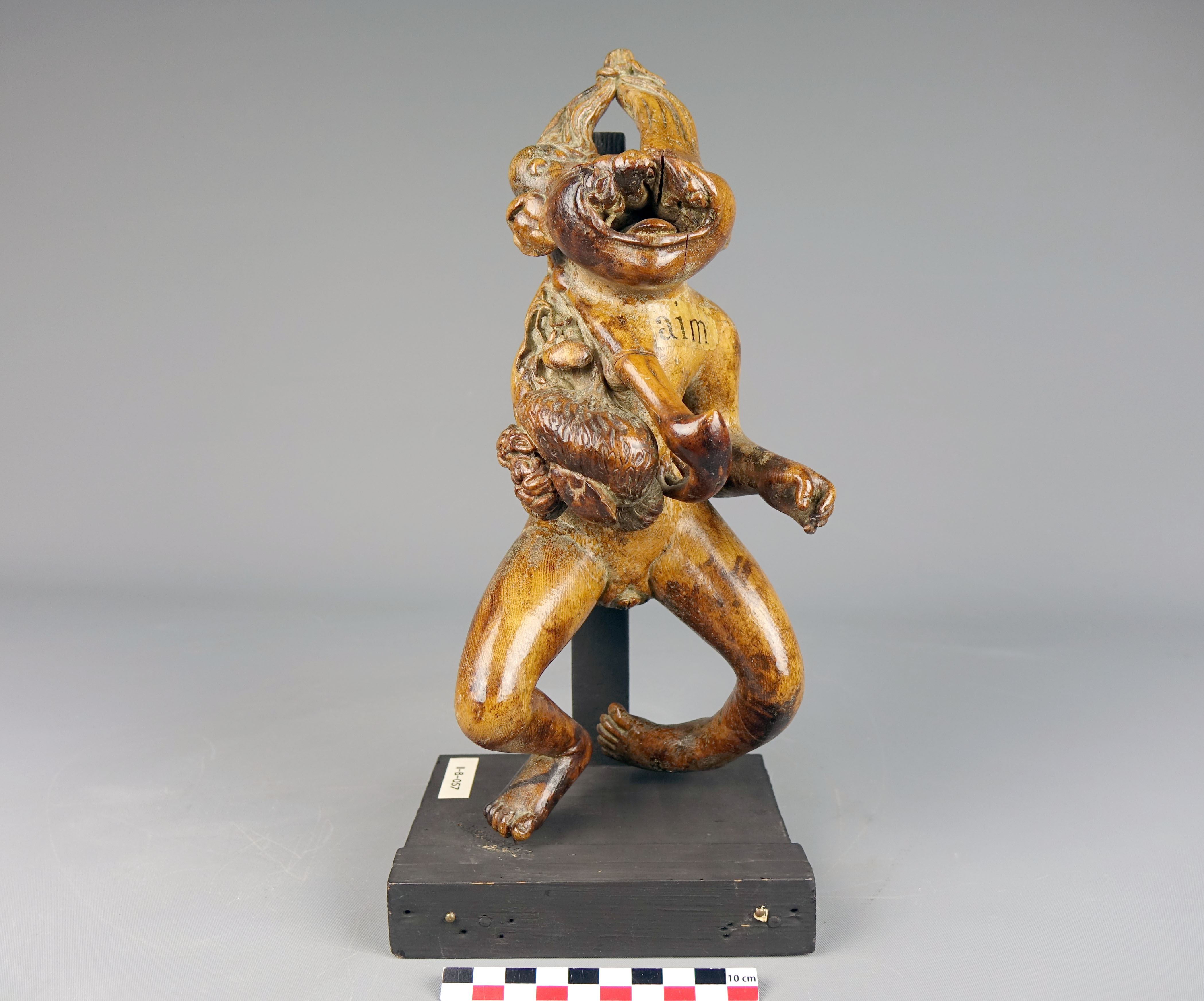 - Étiquette : Sur l’objet – le spécimen : Dymo : "II-B-057" ; "Aim"