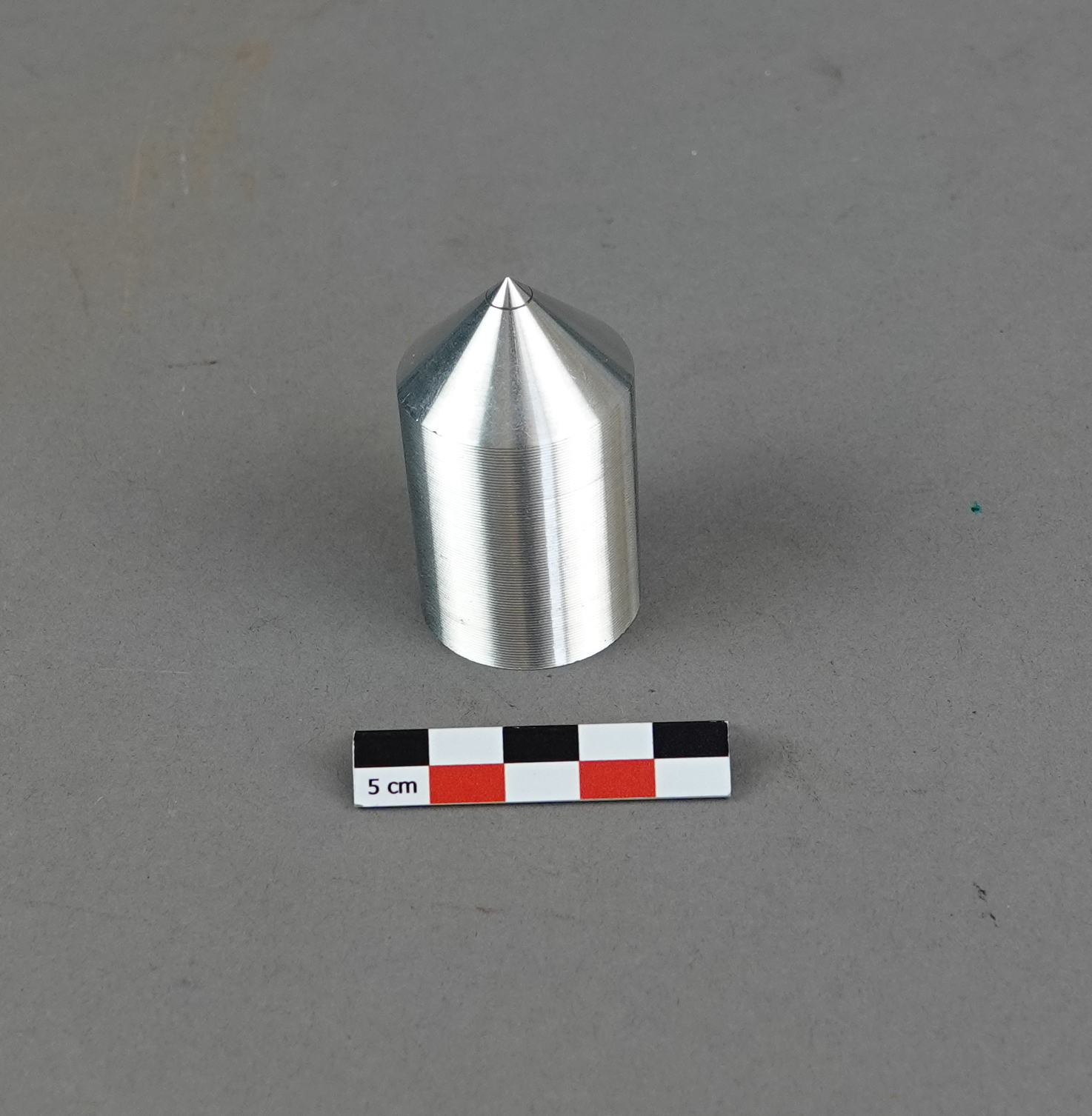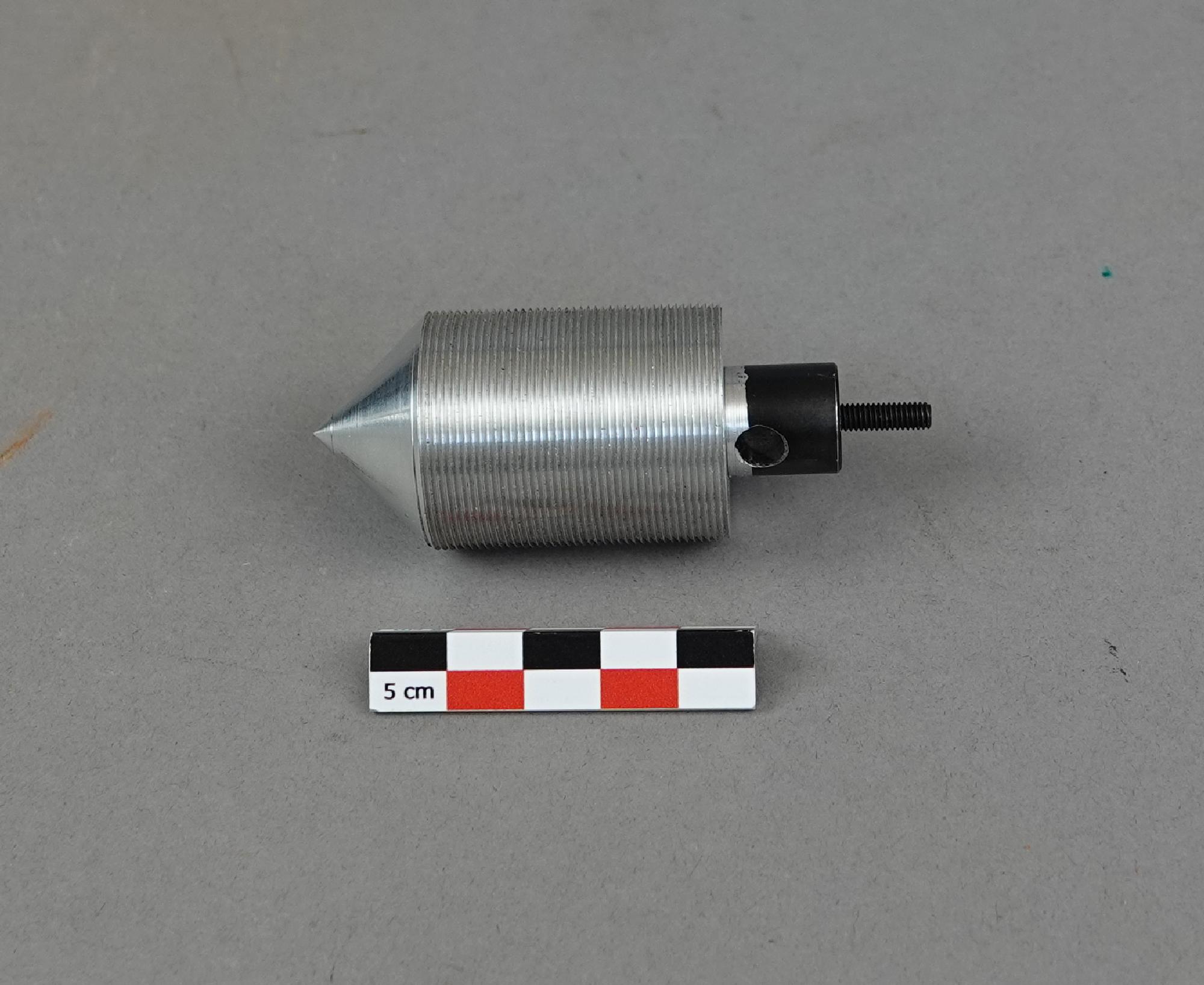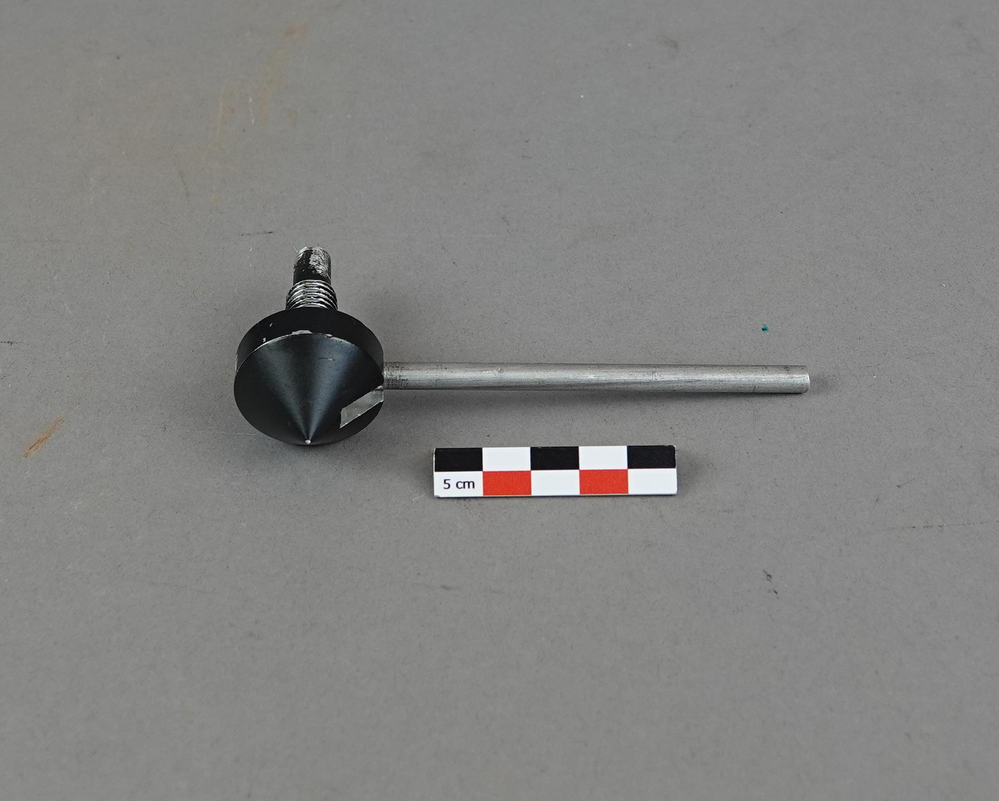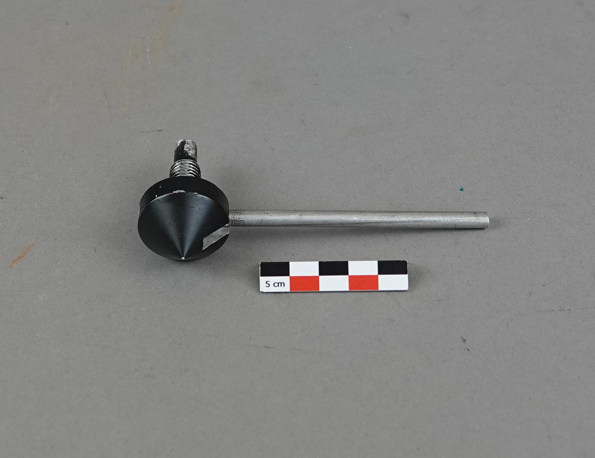 Boîte en bois doublé de mousse avec 14 cônes tous différents. Avec il y a une feuille papier manuscrite avec des schémas et des calculs.