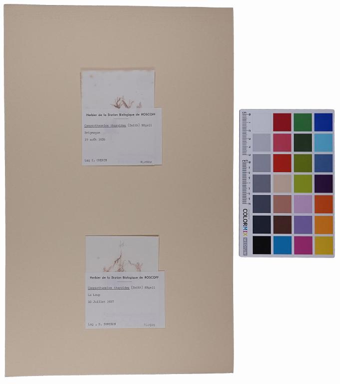 Domaine : BotaniqueTypologie : HerbierCollections : Station Biologique de RoscoffIdentification du spécimen : Compsothamnion thuioides