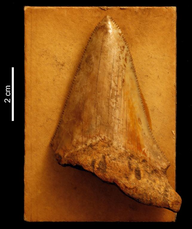 Fiole en verre montée sur planche, présentant des dents fossiles de requins des gisements de phosphate de chaux de Tebesca, province de Constantine