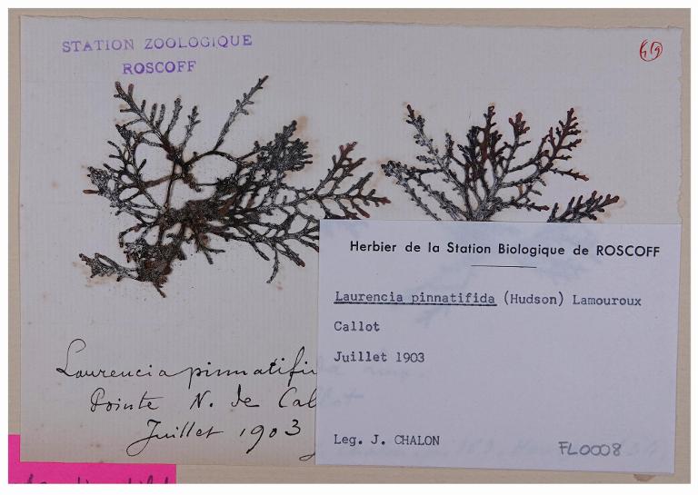 Identification du spécimen : Osmundea ramosissimaProvenance géographique : Île CallotDomaine : BotaniqueTypologie : Herbier