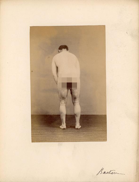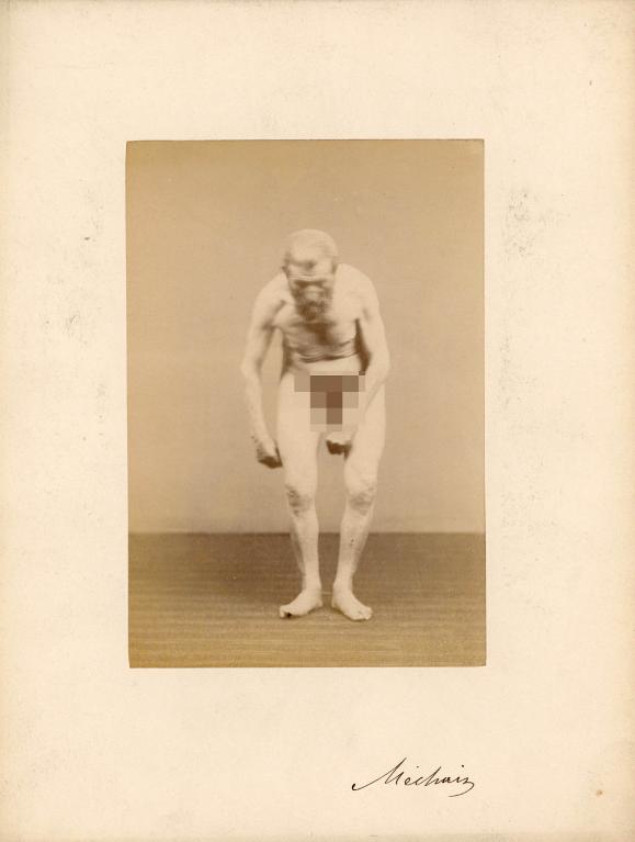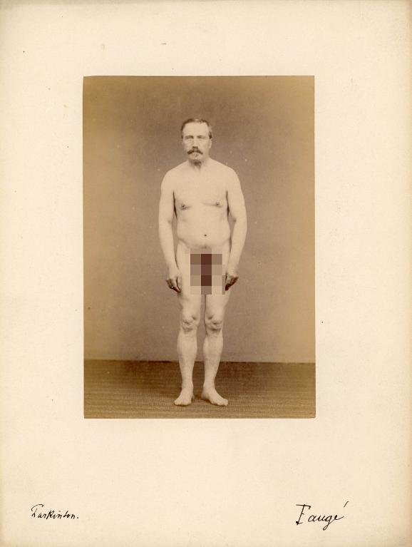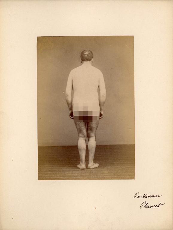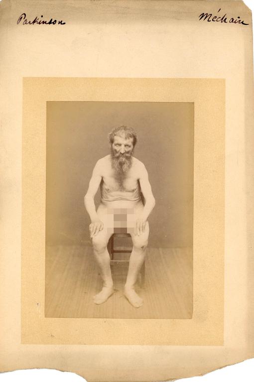 Photographie clinique représentant un homme atteint de la maladie de Parkinson