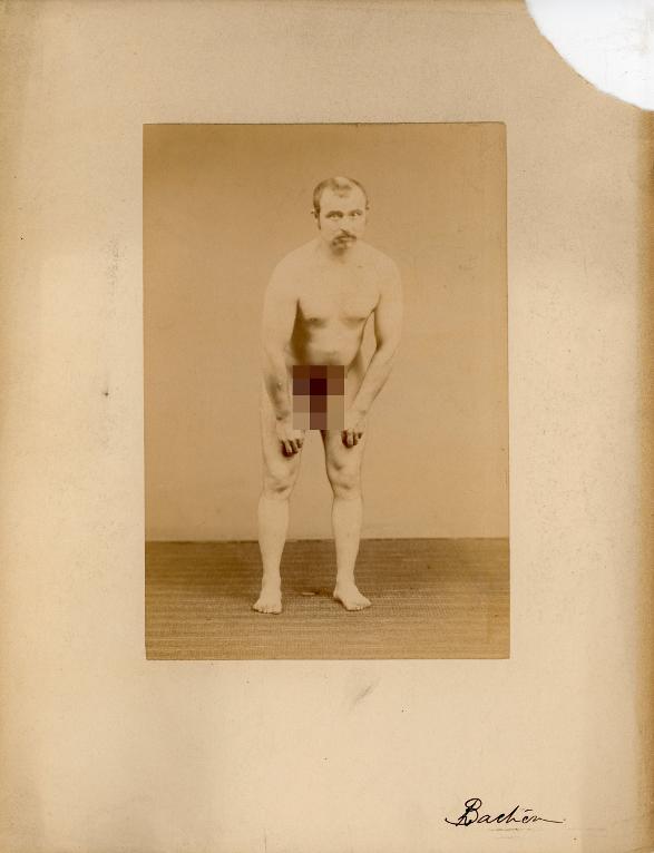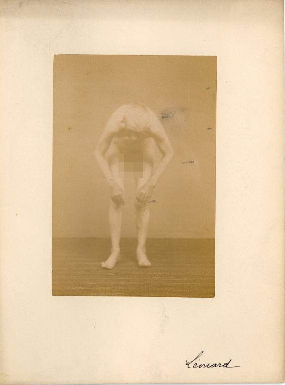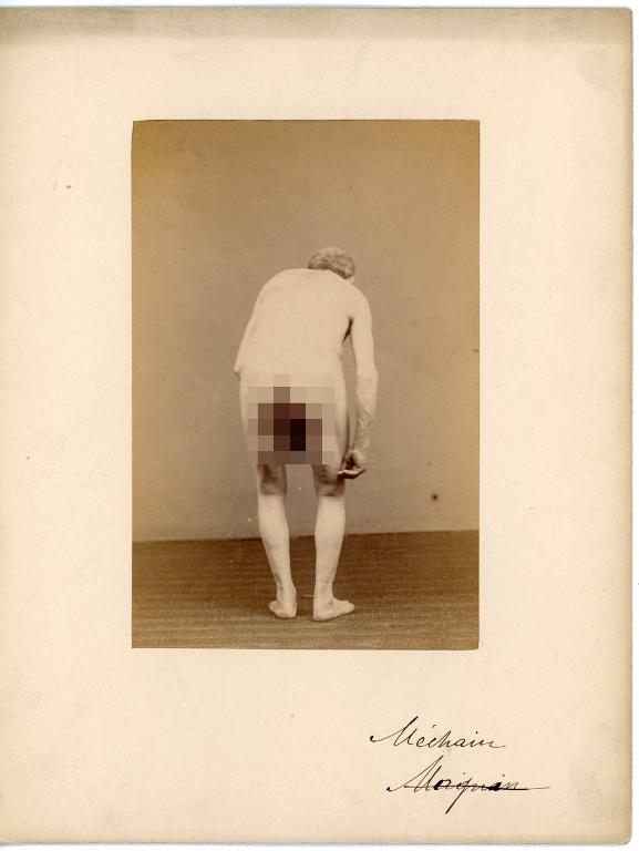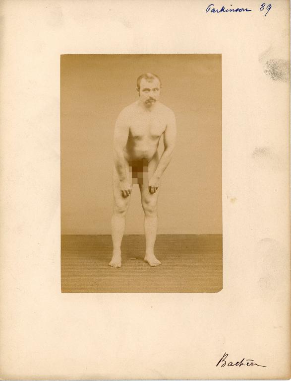 Photographie clinique représentant un homme de côté atteint de la maladie de Parkinson