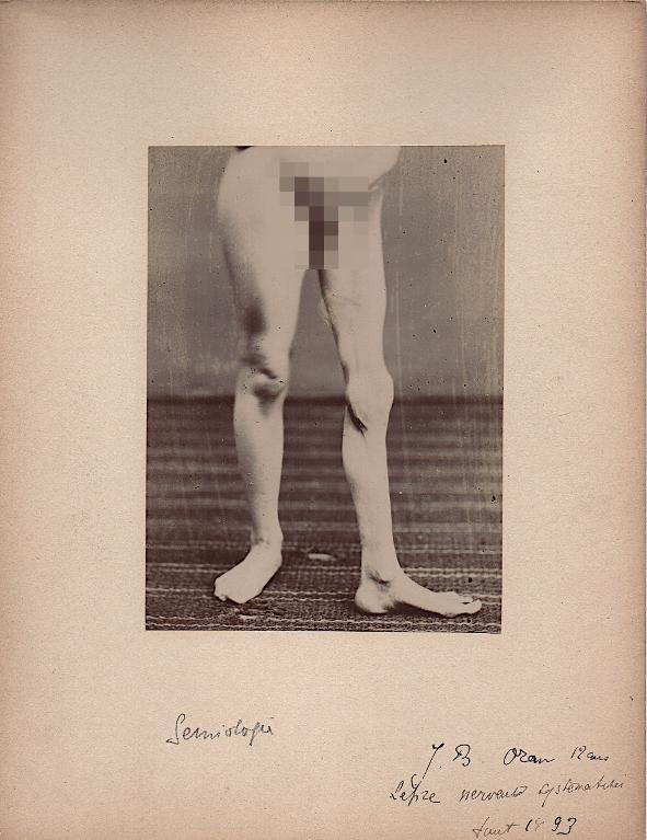Photographie clinique représentant deux jambes atteintes de paraplégie