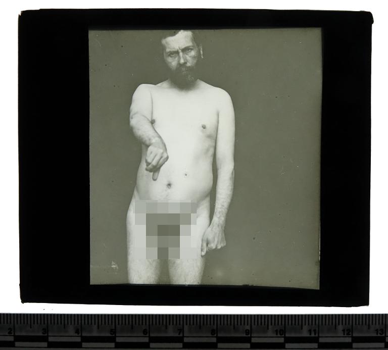 Plaque photographique représentant un homme nu effectuant une rotation de la main
