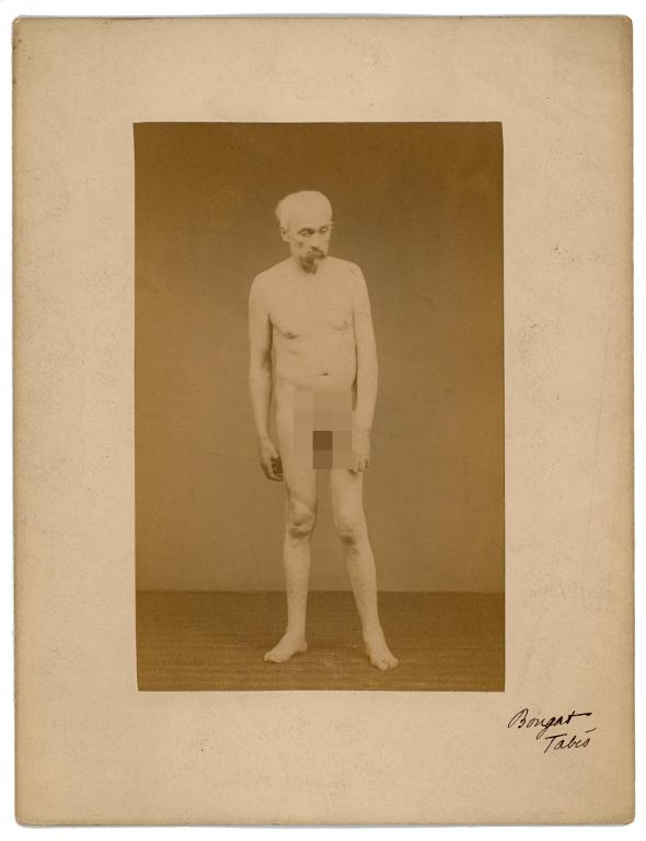 Photographie clinique représentant un homme de face, debout, atteint de neurosyphilis