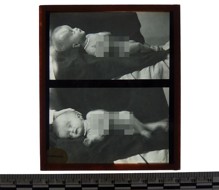 Plaque photographique : reproduction d’une photographie publiée d’enfant atteint d’hydrocéphalie