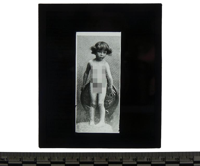 Plaque photographique : reproduction d’une photographie publiée représentant un enfant (pathologie inconnue)
