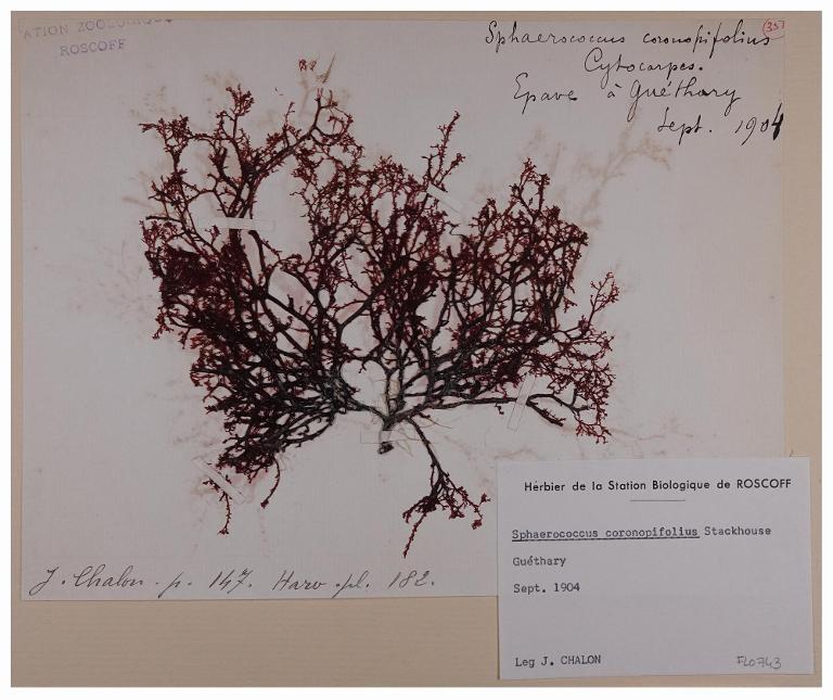 Typologie : HerbierProvenance géographique : GuétharyFonds : Chalon, JeanIdentification du spécimen : Sphaerococcus SphaerococcusDomaine : Botanique