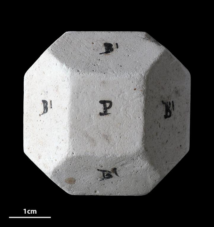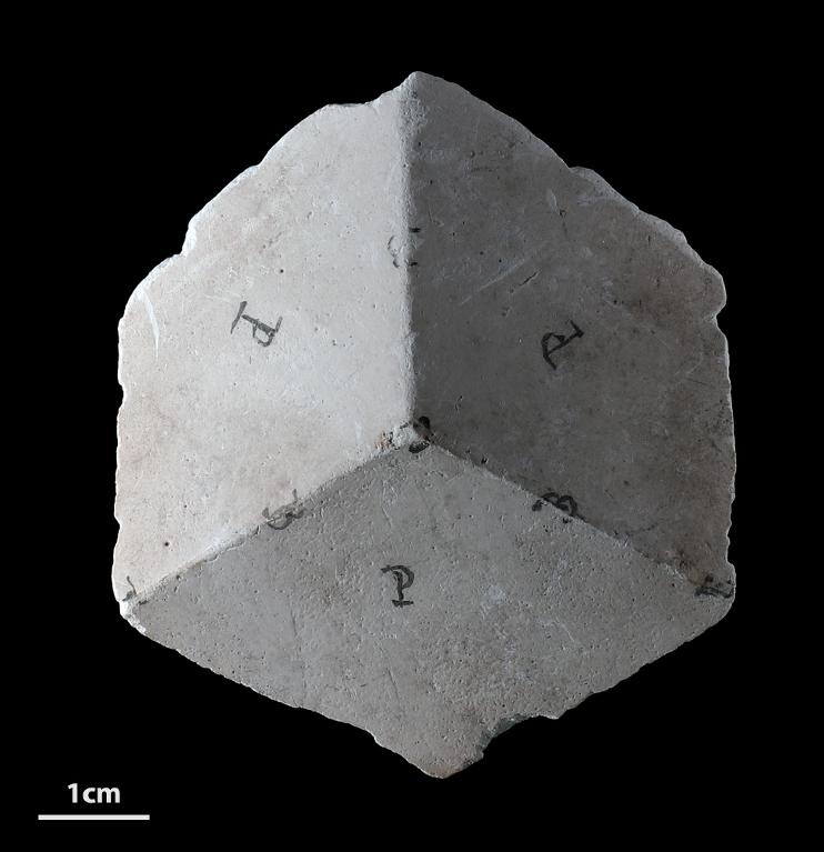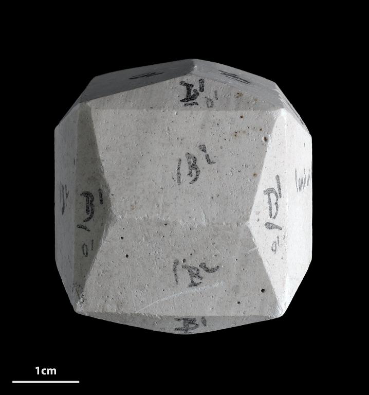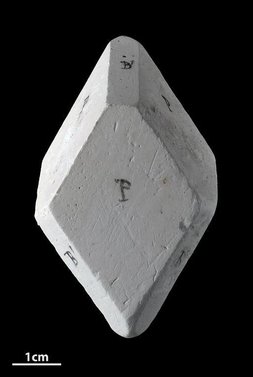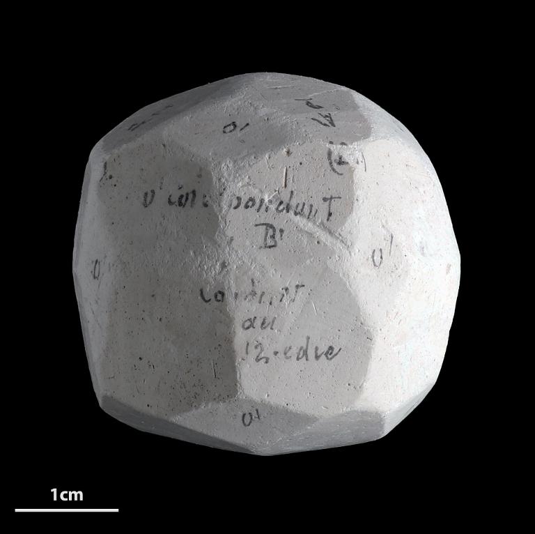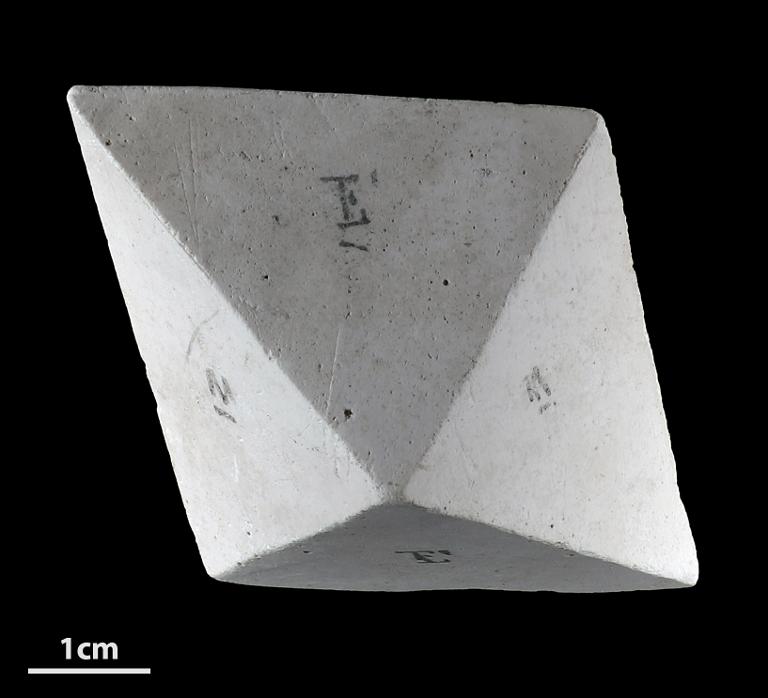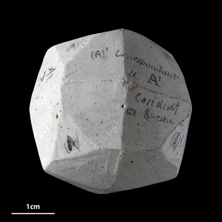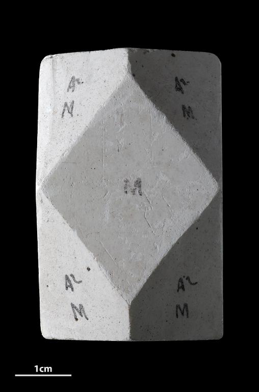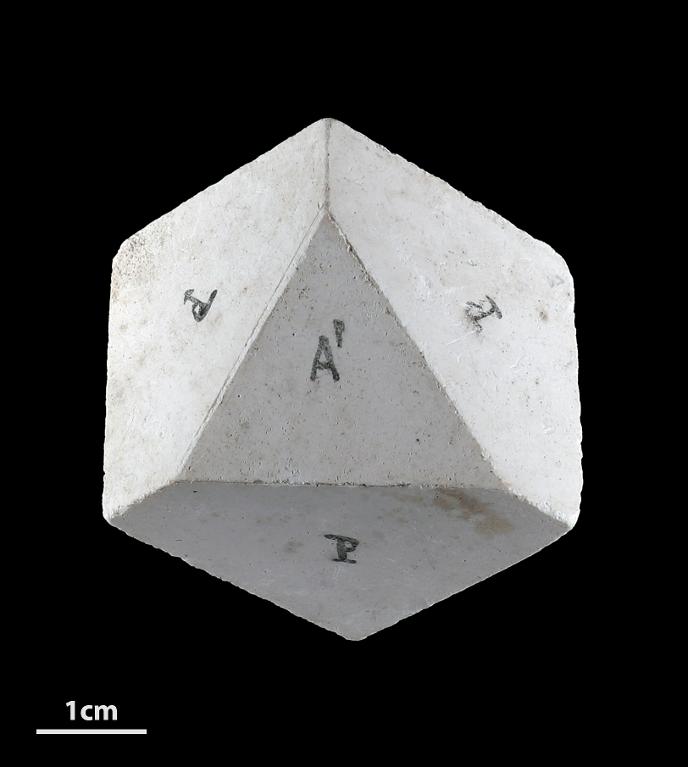 Modèle pédagogique cristallographique du système rhomboédrique en plâtre.