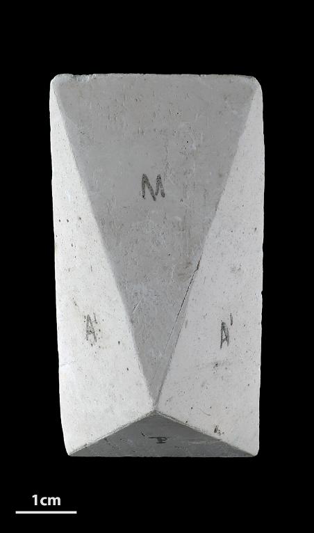 Modèle pédagogique cristallographique du système monoclinique en plâtre.