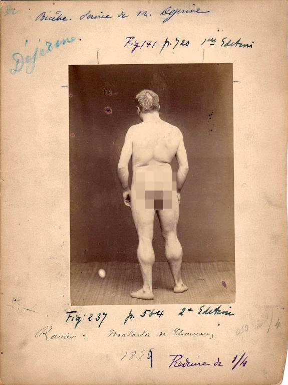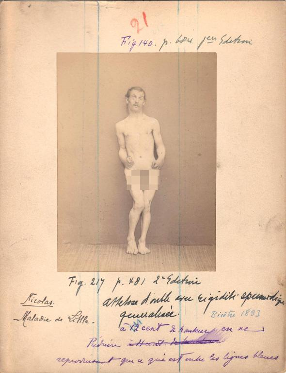 Photographies clinique représentant deux bustes d’hommes atteints de myopathie