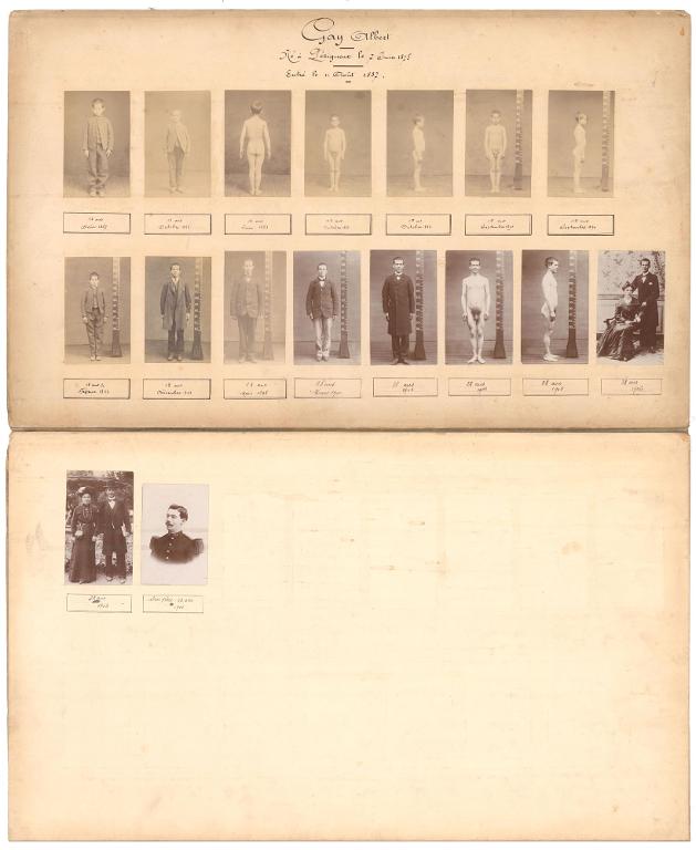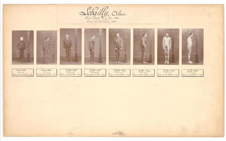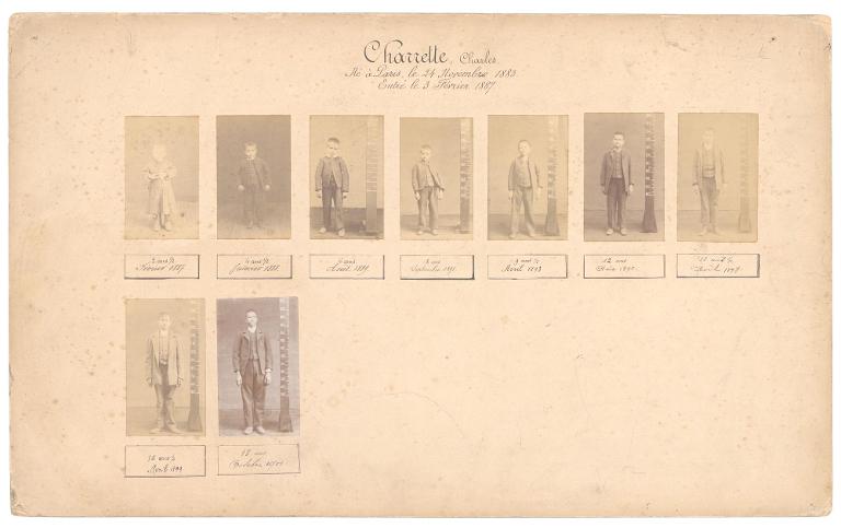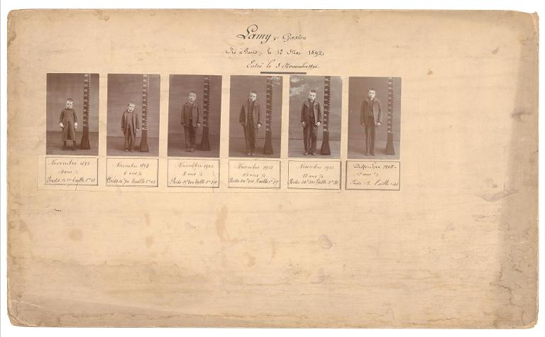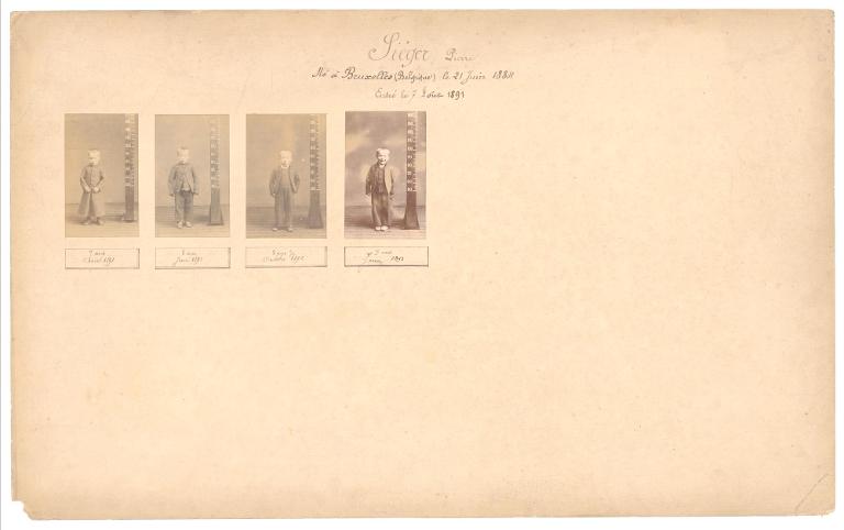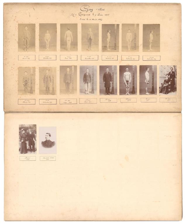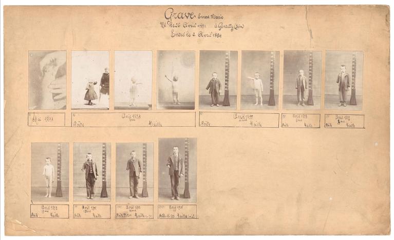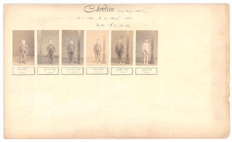 Planche de photographies cliniques du cas Thénéry dit Le Pacha, décrit comme présentant une idiotie, du crétinisme, et une cachexie pachydermique
