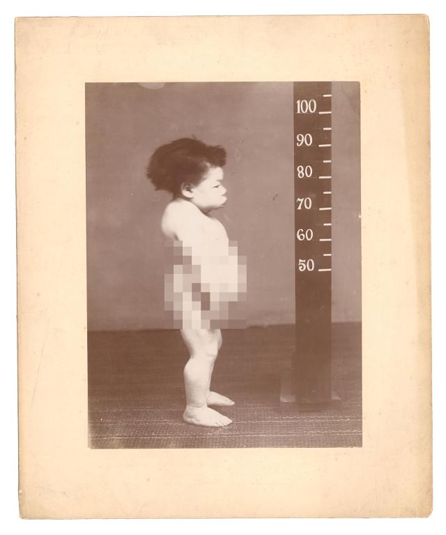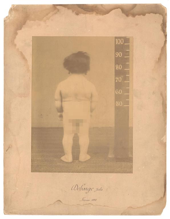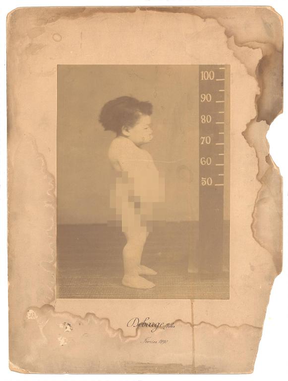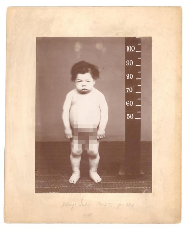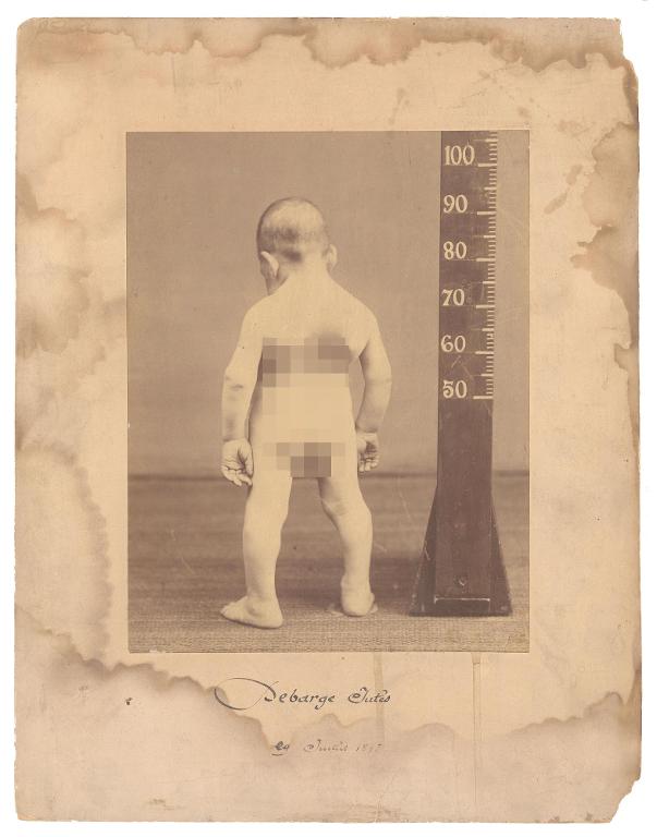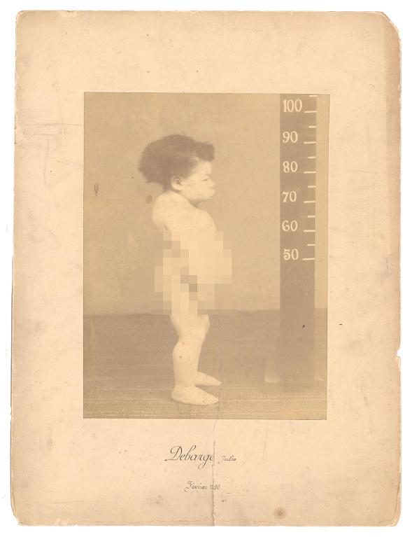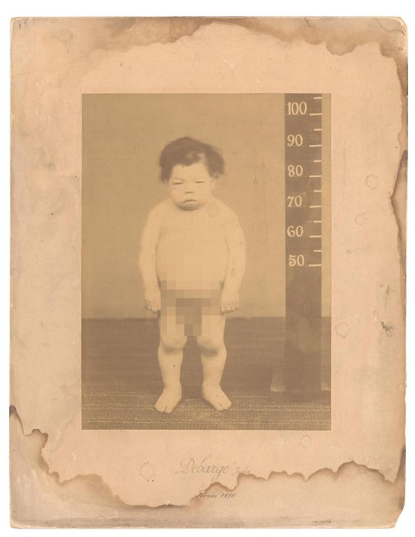 Photographie clinique grand format du cas Debarge, décrit comme présentant une idiotie myxœdémateuse