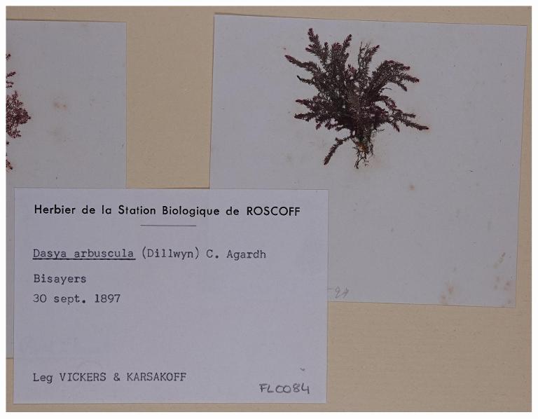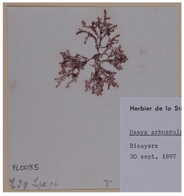 Fonds : Karsakoff, N.Provenance géographique : Les BisayersTypologie : HerbierIdentification du spécimen : Dasya arbuscula