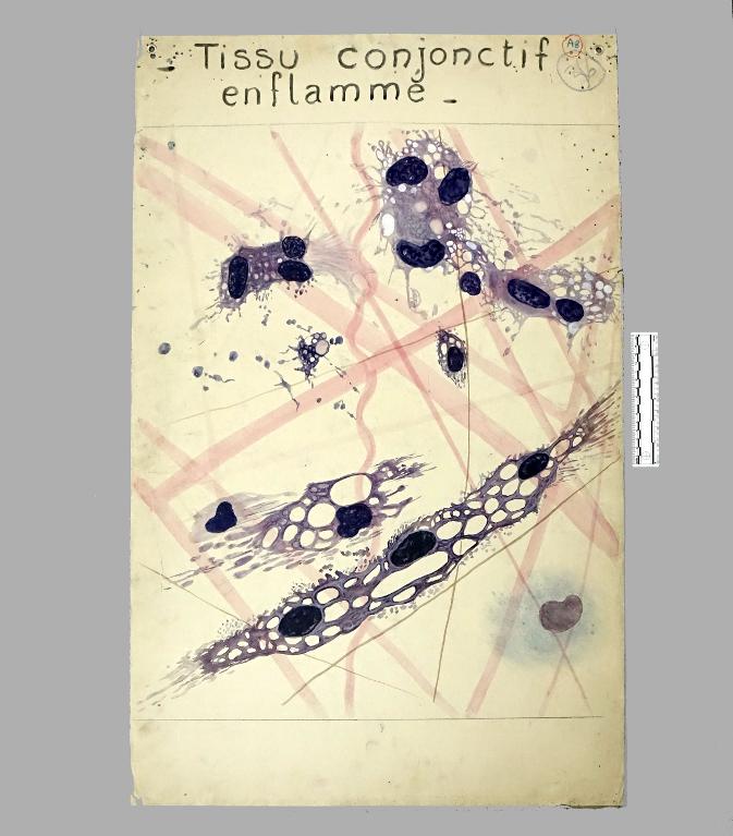 Planche d’enseignement : représentation microscopique d’un tissu conjonctif enflammé