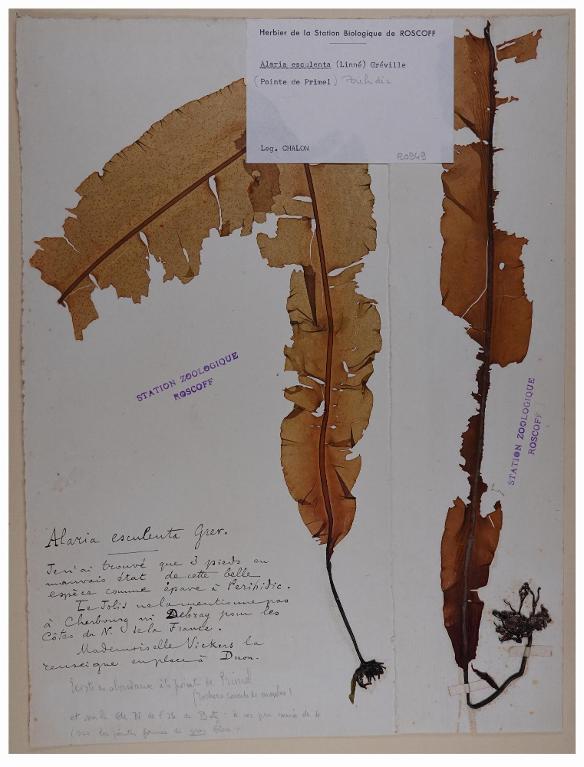 Identification du spécimen : Alaria esculentaFonds : Chalon, JeanDomaine : BotaniqueCollections : Station Biologique de Roscoff
