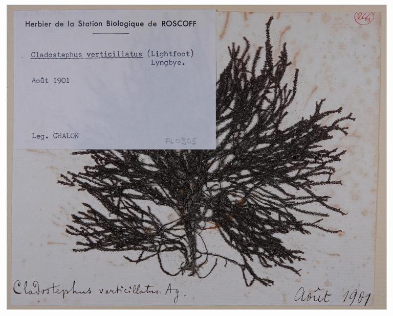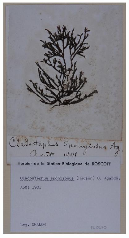 Identification du spécimen : Cladostephus verticillatusFonds : Chalon, JeanCollections : Station Biologique de RoscoffDomaine : Botanique