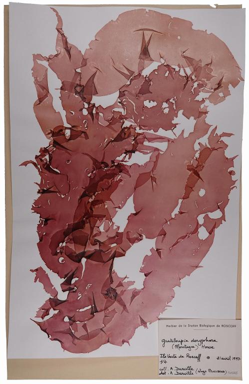 Identification du spécimen : Grateloupia doryphoraProvenance géographique : Île VerteCollections : Station Biologique de Roscoff
