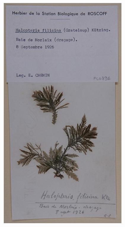 Provenance géographique : Baie de MorlaixIdentification du spécimen : Halopteris filicinaFonds : Chemin