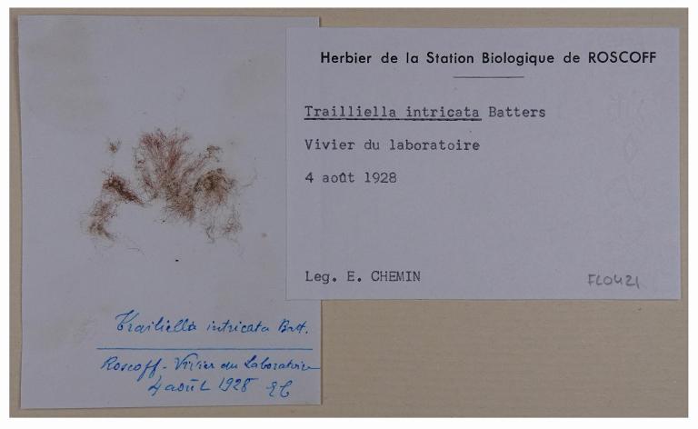 Typologie : HerbierDomaine : BotaniqueCollections : Station Biologique de RoscoffIdentification du spécimen : Trailliella intricataFonds : Chemin