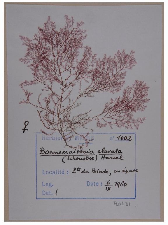 Collections : Station Biologique de RoscoffDomaine : BotaniqueProvenance géographique : Logonna-DaoulasFonds : MagneIdentification du spécimen : Bonnemaisonia hamifera