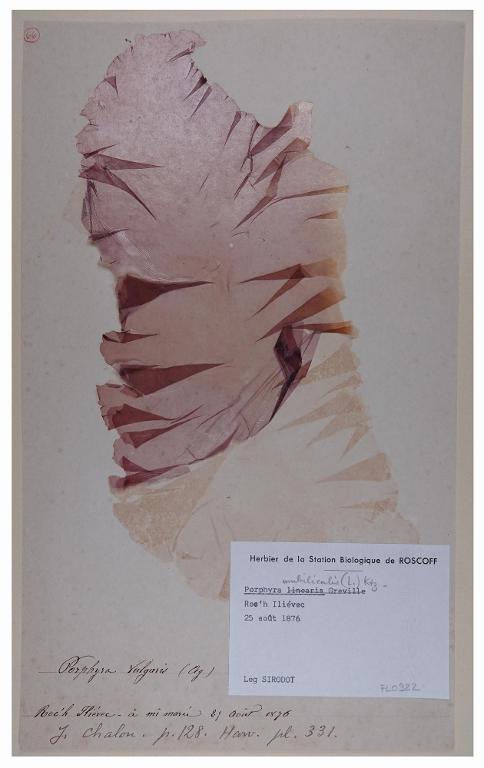 Collections : Station Biologique de RoscoffIdentification du spécimen : Porphyra vulgarisDomaine : BotaniqueFonds : Sirodot