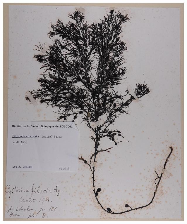 Collections : Station Biologique de RoscoffTypologie : HerbierDomaine : BotaniqueIdentification du spécimen : Cystoseira fibrosa