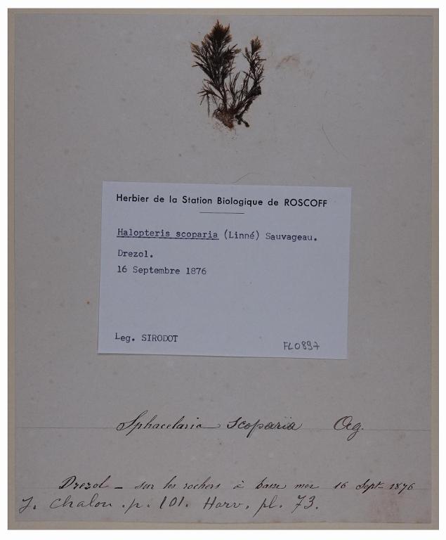 Fonds : SirodotIdentification du spécimen : Sphacelaria scopariaDomaine : BotaniqueTypologie : Herbier